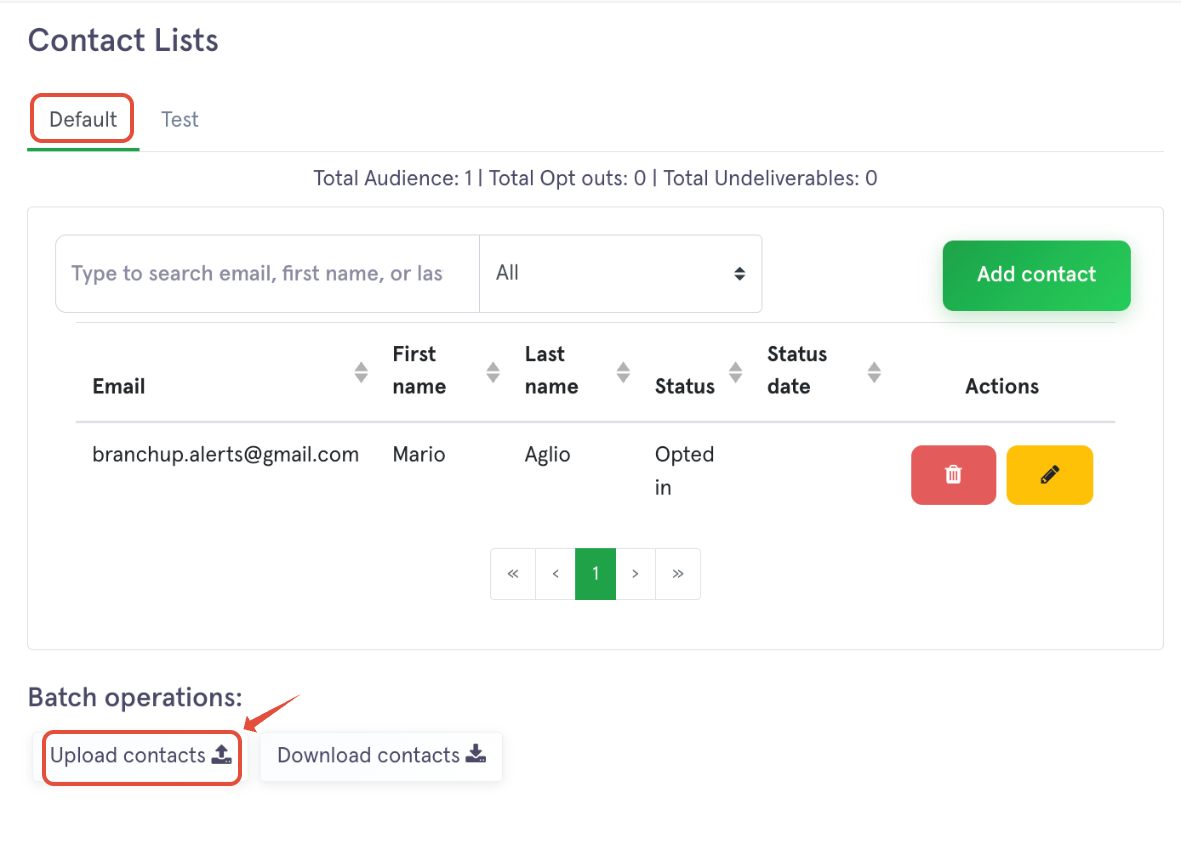 - Click 'Upload contacts'