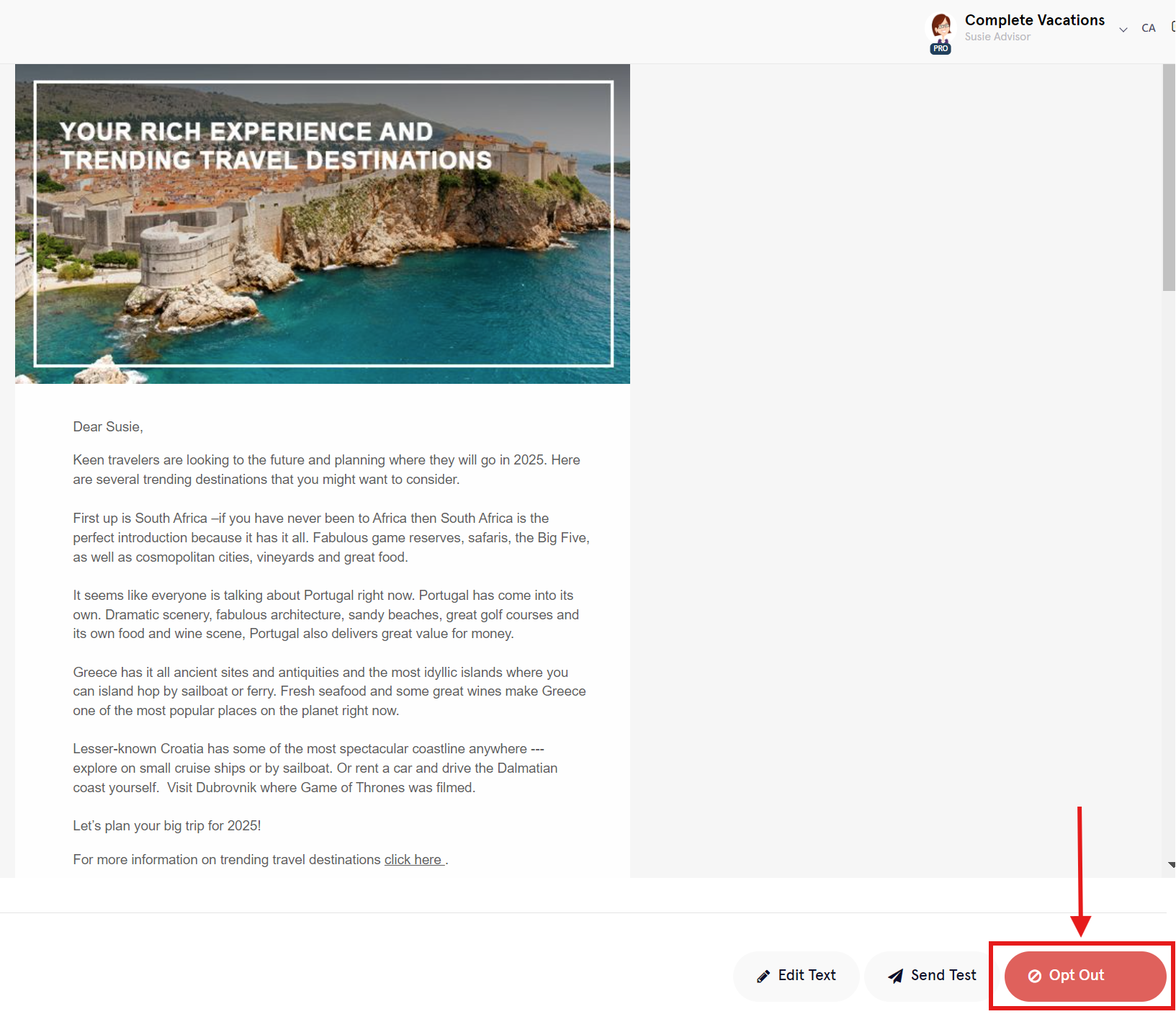 - Scroll down to the bottom to find the red 'Opt Out' button