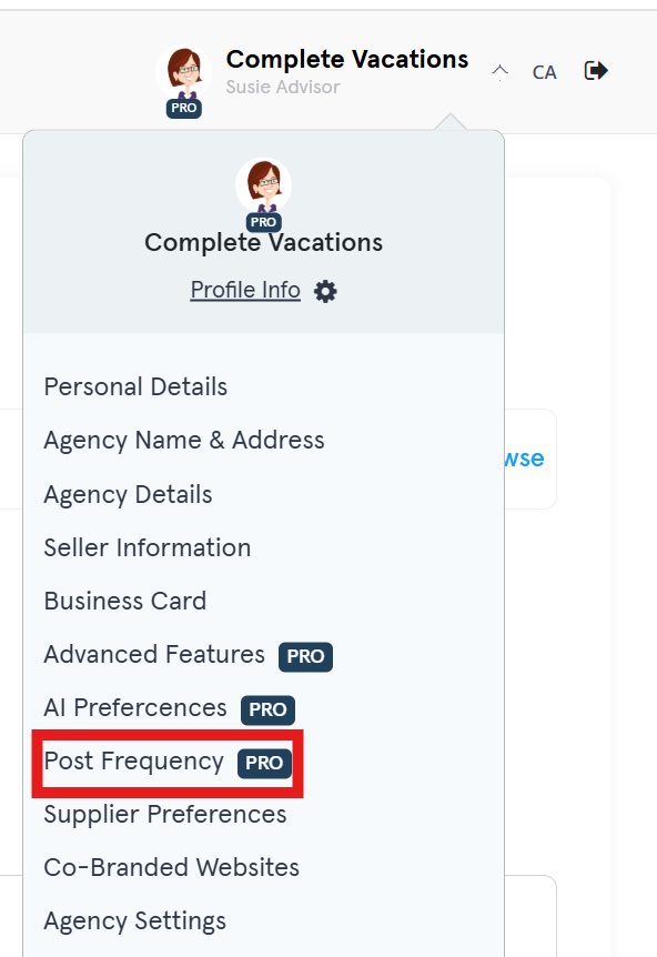 - Click the drop-down menu beside your profile -> click 'Post Frequency'
