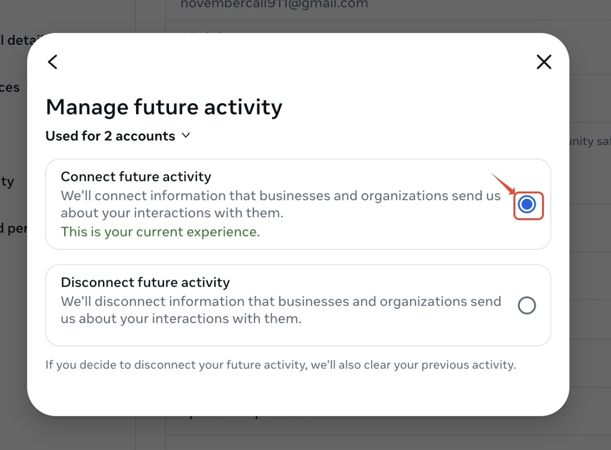 “OAuthException: Your account’s future activity history off Meta technologies is currently turned off"