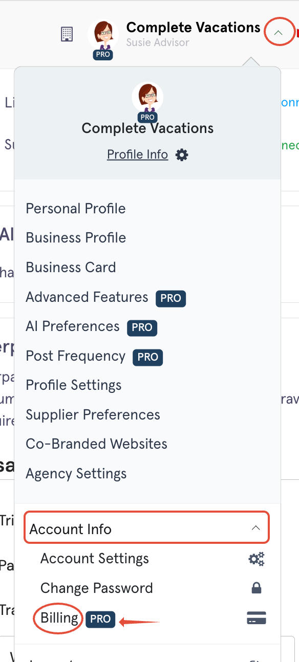 Choose Billing.